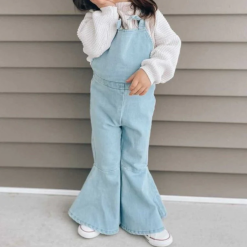 BBL BAILEY’S BLOSSOMS INFANT/TODDLER BARBIE PLEATED DENIM BELL BOTTOM DISTRESSED WHITE