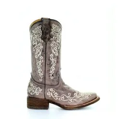 CORRAL KIDS/TEEN BROWN/BONE EMBROIDERY SQUARE TOE BOOT – A2980
