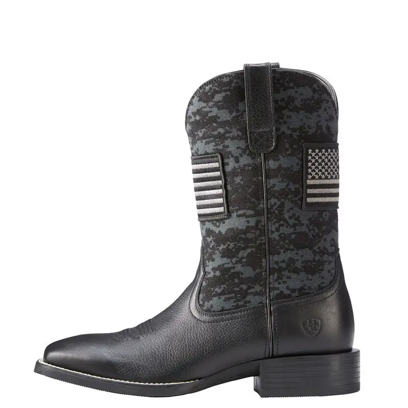 Show American pride when you ride with the Ariat Sport Patriot Boots. These men’s boots feature an American flag and camo pattern in simple suede and leather. Innovative 4LR comfort technology in the Patriot boots offer all-day wearability. The synthetic air mesh lining circulates air toย help your feet stay dry.