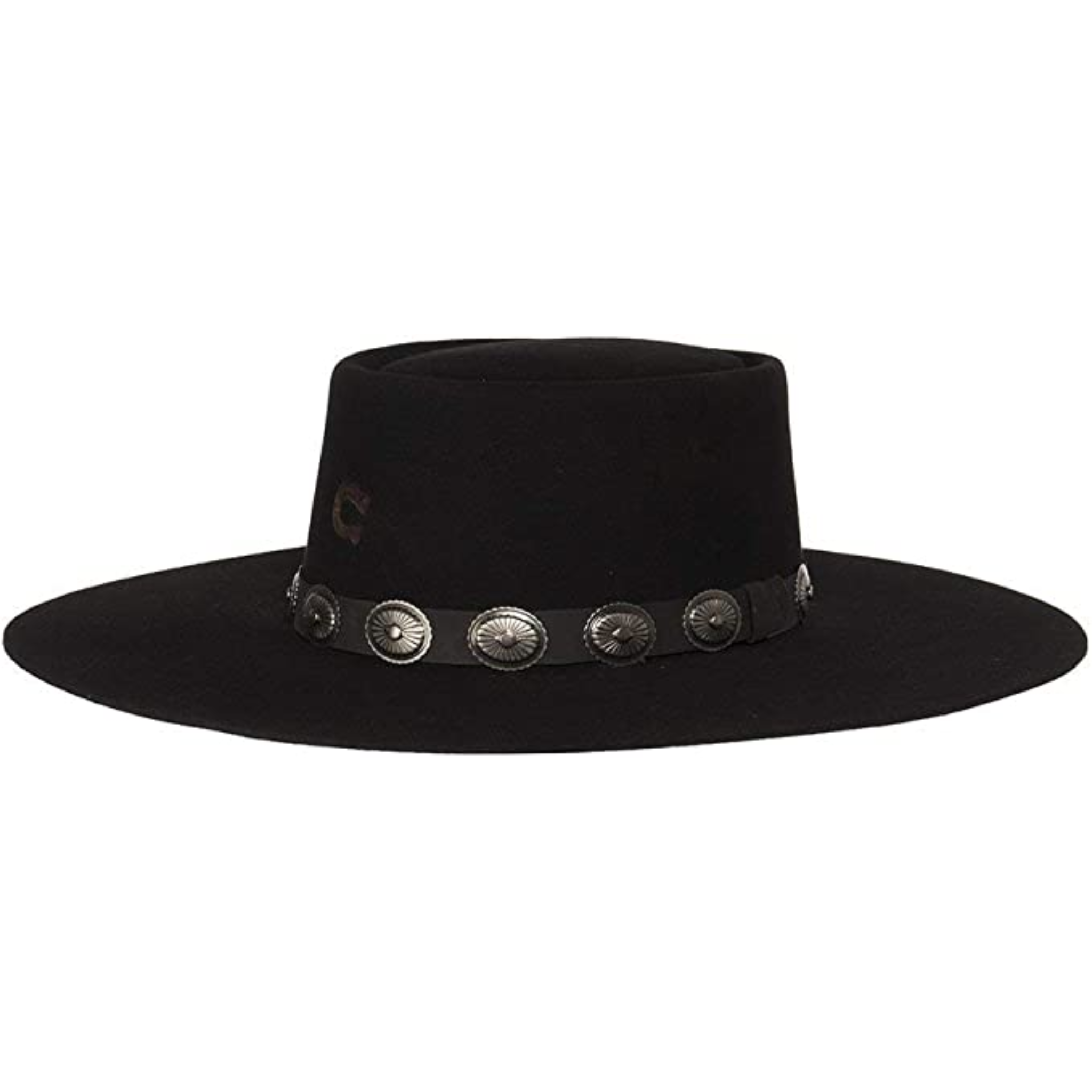 The Charlie 1 Horse High Desert Felt Hat is straight out of an old western! This buckaroo style hat has a 4 1/4″ flat brim and a 4″ gambler crown and silver concho hatband.