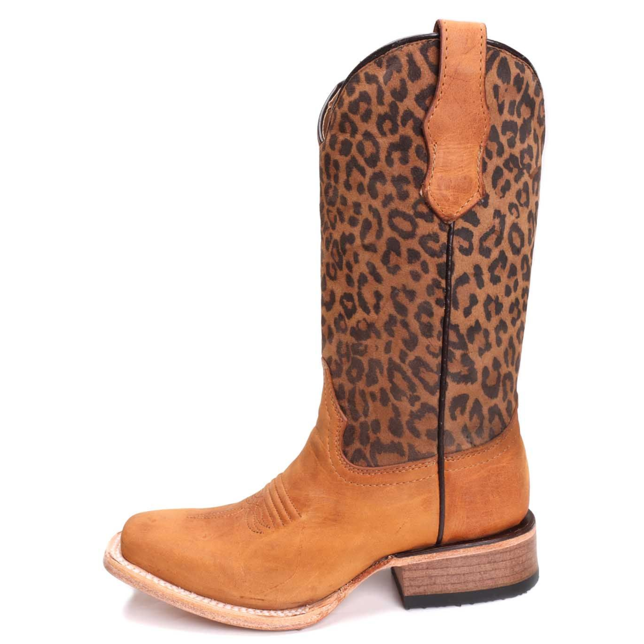 This pair of teen’s cowboy boots are beautifully handcrafted by Circle G. The square toe foot is a pretty shade of honey-tan. A leopard print rough-out top gives the girl’s boots a fun and offbeat vibe. They’re also made comfortably with a cushioned insole, an elevated western heel, and a roomy square toe. Perfect for a young cowgirl’s western wardrobe!