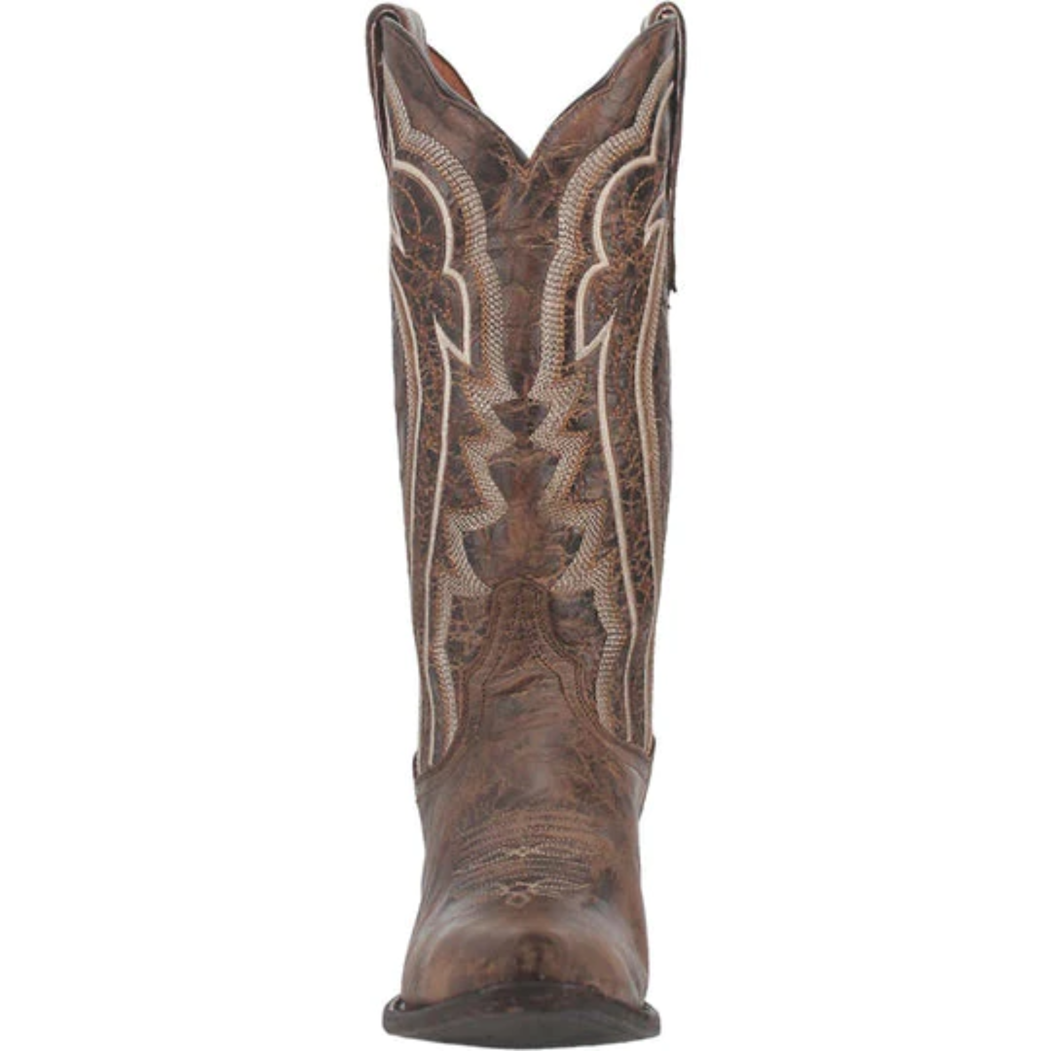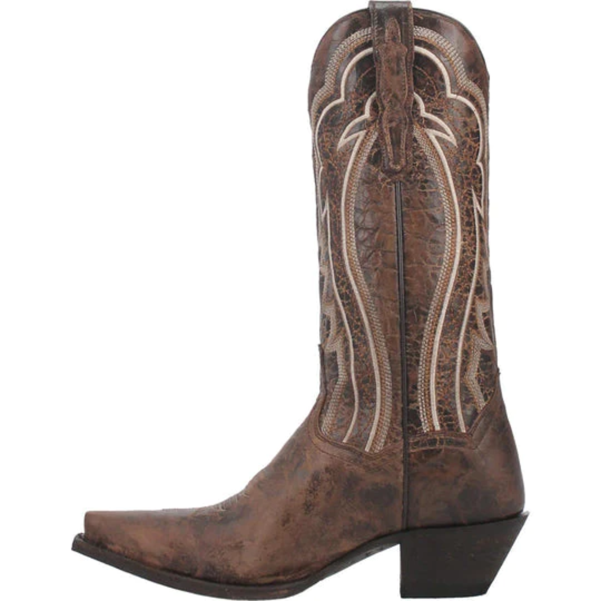 Dan Post used distressed leather to create the Anya cowgirl boot. The upper has a stitched design topped with a scalloped topline. Features an Ultimate Flex insole, popular snip toe and medium cowboy heel. The design is timeless, classic western.