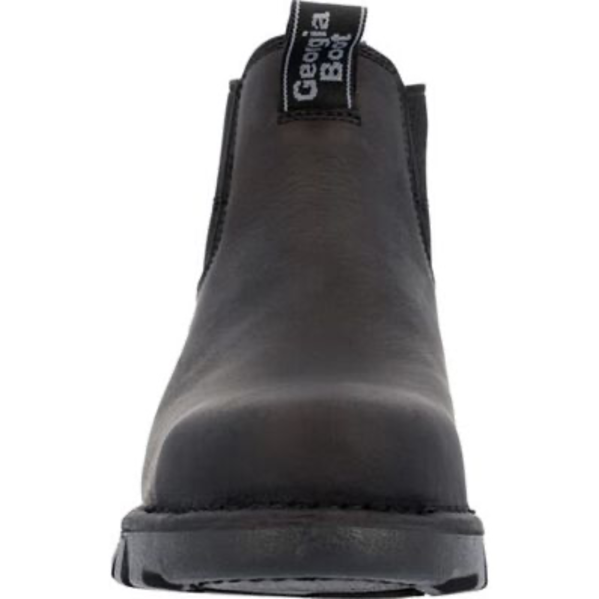 A lightweight chelsea work boot with heavy-duty performance features. The Georgia Boot Eagle One steel toe waterproof Chelsea work boot is built with a combination cement and San Crispino construction. The full-grain SPR leather upper features twin gore panels and nylon pull tabs for an easy on of the boot. Designed for rugged performance and supreme comfort, the Eagle One collection is a great choice for outdoor work!