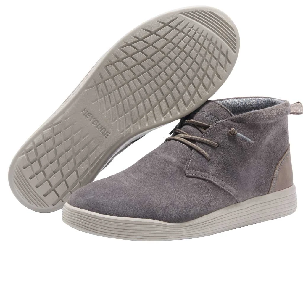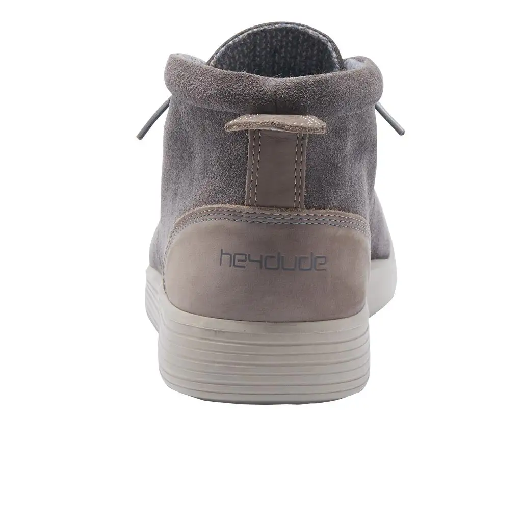 A clean, understated boot in supple premium suede. Waxed leather reinforcement at the heel for extra stability. Soft and breathable wool blend lining. Featuring Hey Dude’s Easy-On System with no-tie elastic laces.