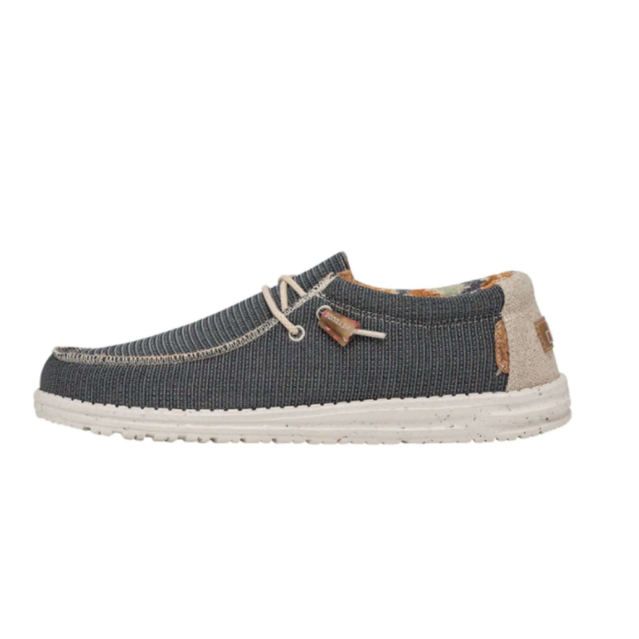 Hey Dude’s iconic design in the best earth-friendly materials possible. Classic moccasin construction in a stretch knit woven from 100% recycled plastic bottles, with hemp reinforcement at the heel. Soft, organic cotton lining. Recycled cork, recycled rubber and organic cotton details. As always, featuring our Easy-On System with organic cotton laces.