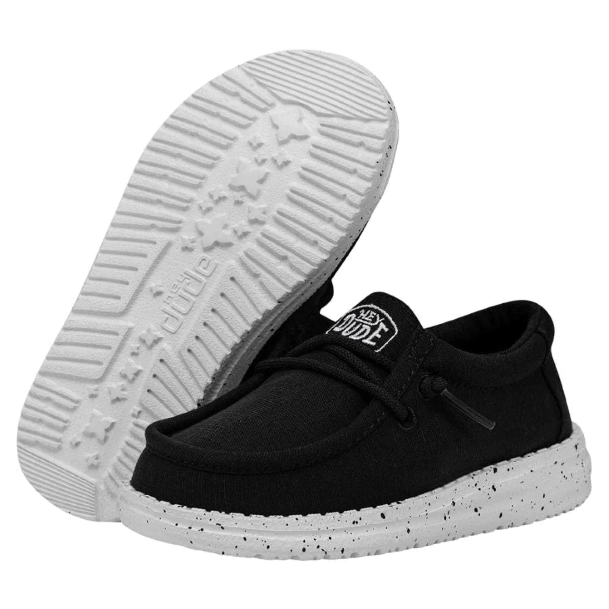 It’s never too early for their first HEYDUDE go-to’s. The Wally Toddler Slub Canvas collection has all the tried-and-true construction you know and love, but extra lightweight for all the little runners in your life. Featuring a durable slub-woven upper and lined with soft cotton for durability and comfort. Finished off on an ultralight outsole with no-tie, elastic laces and a cushioned ankle collar for extra support. Made just right for spirited little feet.