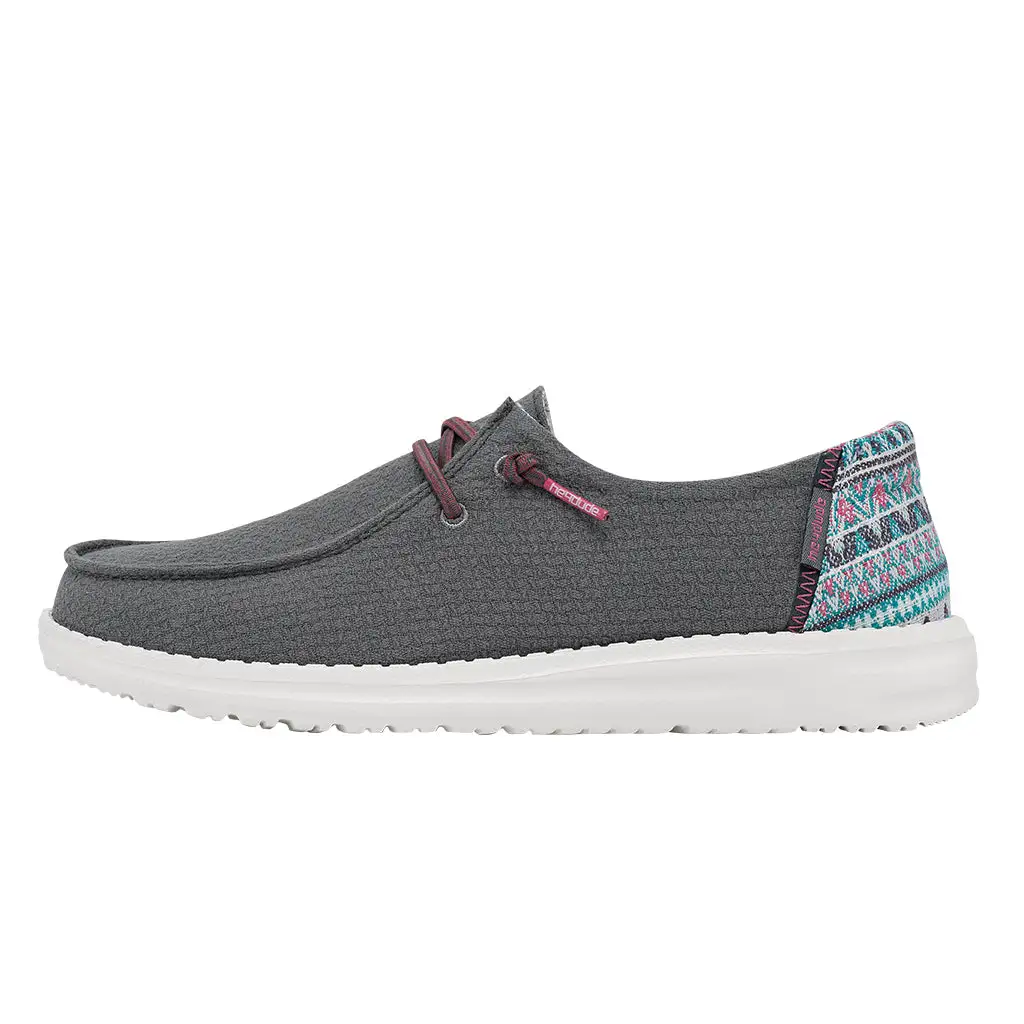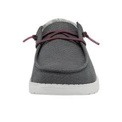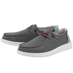 The Wendy collection introduces Hey Dude’s iconic low-top moc. A soft, breathable cotton canvas in an easy, neutral color and lined in a soft, cotton lining for simple strides. Featuring an easy-on system with elastic laces and an ultralight outsole for all-day comfort.