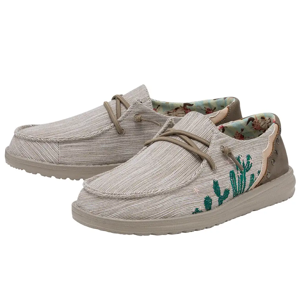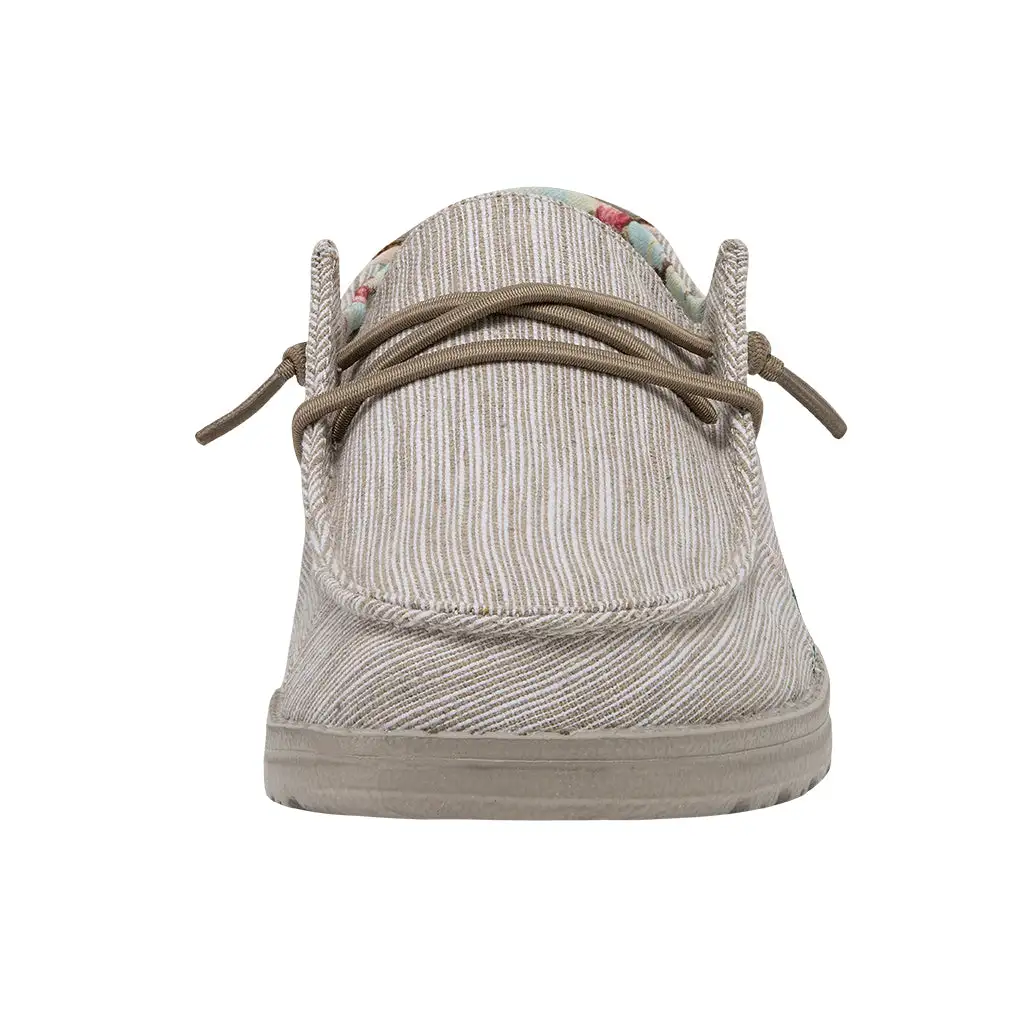 The Wendy collection introduces Hey Dude’s iconic low-top moc. A soft, breathable cotton canvas in an easy, neutral color. Lined in a soft, cotton lining for simple strides. Featuring an easy-on system with elastic laces and an ultralight outsole for all-day comfort.