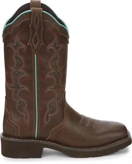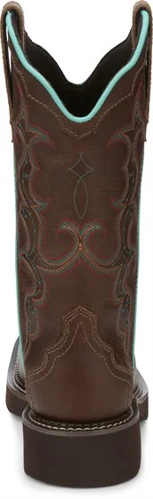 The perfect combination of class and sass, the 12″ tall Raya Tan Justin Gypsy Women’s cowboy boot is striking. Its distressed golden tan leather exterior features a vibrant and feminine stitch pattern on the upper with a teal seam on each quarter and around the collar giving this boot a vintage feel. It’s built for comfort with a square toe and unit heel and the J-Flex Flexible Comfort System® insole with removable orthotic inserts add cushion and support in or out of the saddle.