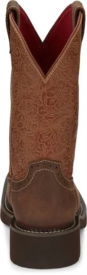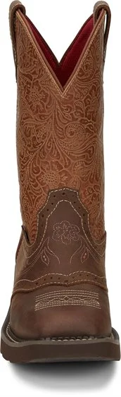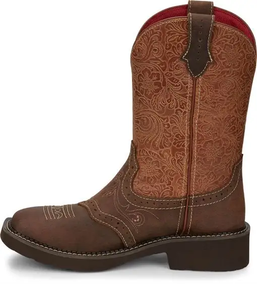 Subtle details combine to make a lasting impression in the 11” Starlina boot in Tan from the Justin Gypsy Collection. A red lining and embossed floral leather shaft complement the Tan Frenzy leather foot. This boot is designed with a wide square toe and equipped with the J-Flex Flexible Comfort System® with removable orthotic insert.