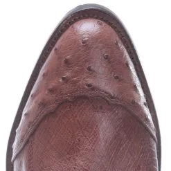 One of the most distinguished parts of this men’s ostrich boot is the foot. From Tony Lama, this R toe boot uses smooth quill ostrich leather that’s colored in a deep tobacco-brown. It’s a four-piece cut with quality angles. This is a cowboy boot that never goes out of style. It’s got a classic leather sole, an angled heel, and a 10-row stitch pattern in multiple thread colors.